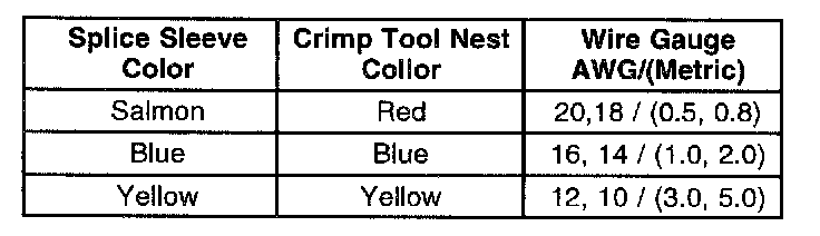 Crimp And Seal Splice Table: