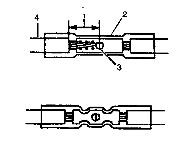 - Strip approximately 7.5 mm (5/16 in) of insulation from each wire to be spliced (1).