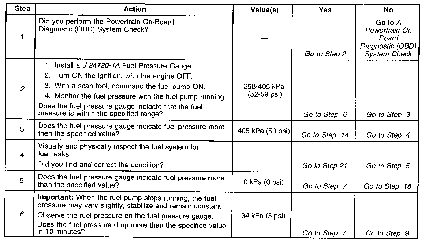 6. A fuel system that drops more than 5 psi in 10 minutes has a leak in one or more areas.