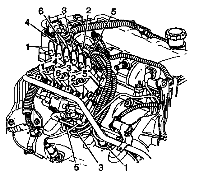 5. Remove the spark plug wire(s) (1, 3 and 5) from the engine right side spark plug(s).