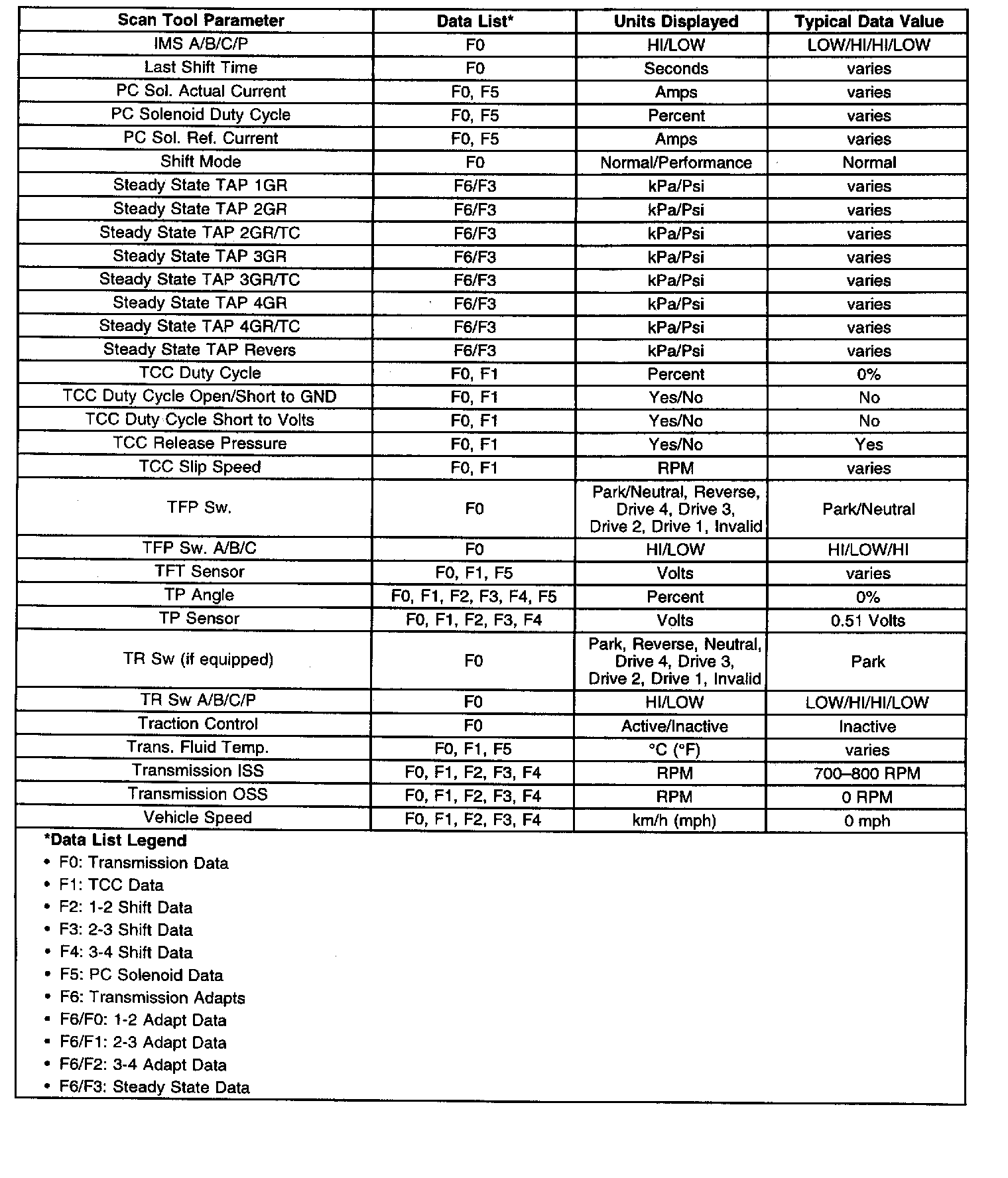 Only the parameters listed are used for diagnosing. If a scan tool displays other parameters, the values are not recommended by General Motors for use in diagnosis. Scan tool values below were recorded under the following conditions: