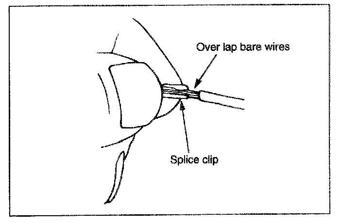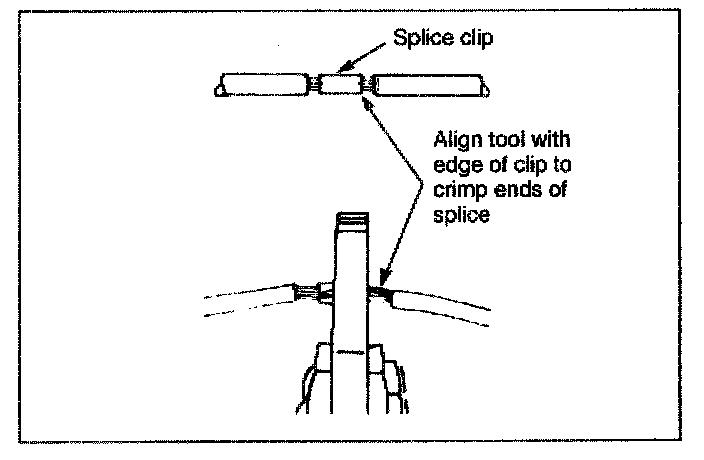 Crimp the splice again, once on each end. Do not let the crimping tool extend beyond the edge of the clip or you may damage or nick the wires.