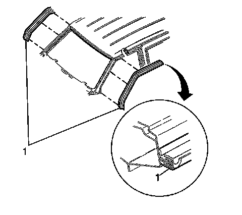 2. Push the molding (1) onto the flange. Start at the pre-formed corners. Work toward the straight flanges.