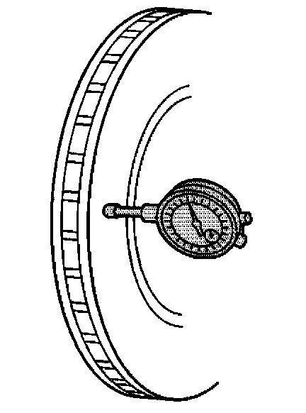4. Using a micrometer calibrated in ten-thousands of an inch, measure and record the thickness variation of the brake rotor at four or more points, around the rotor.