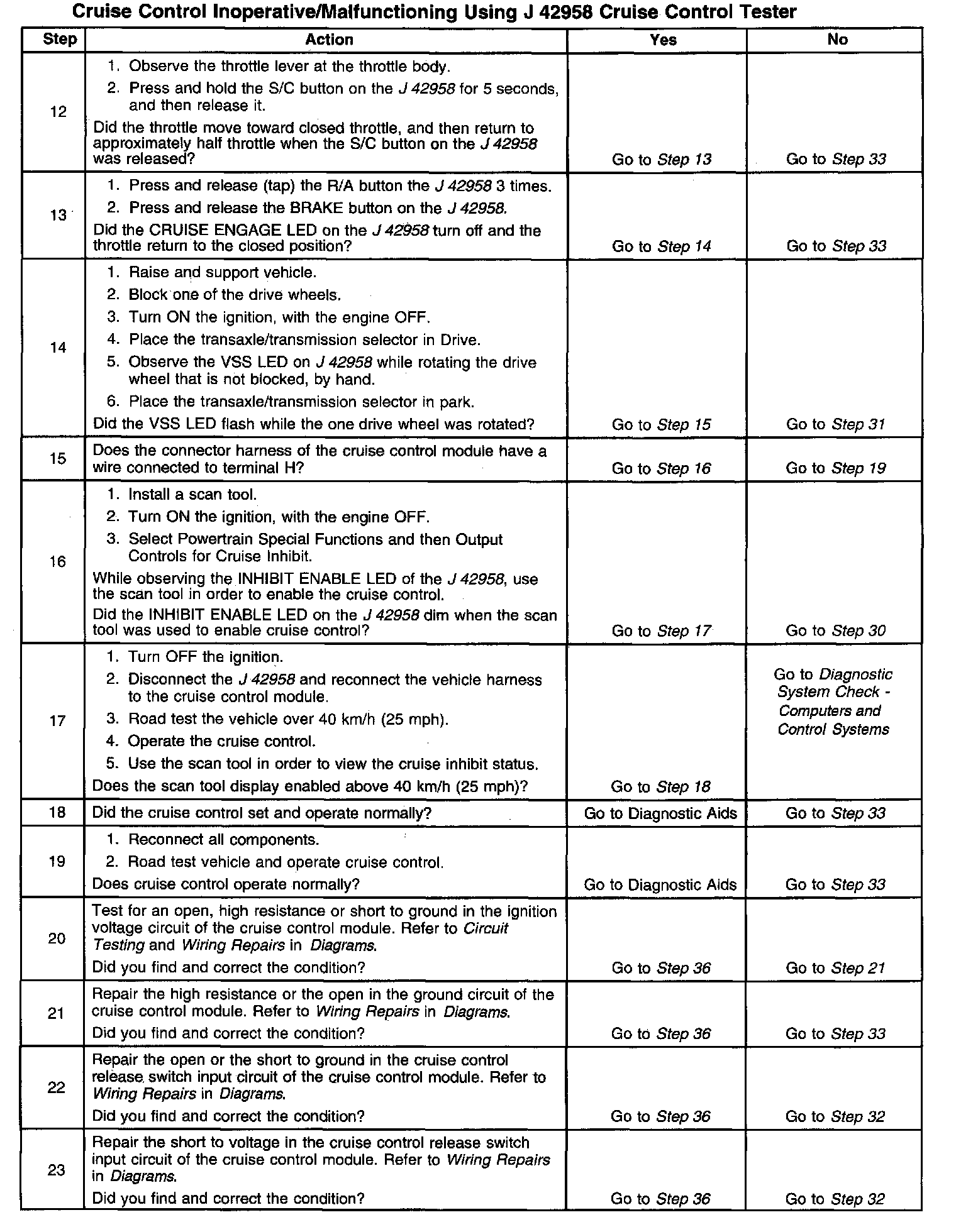 It has been found that when this Tester is used on some vehicles with high resistance or an open in the cruise control module ground circuit, the Tester's LED(s) will light abnormally. For example, the Brake/Clutch and VSS LED(s) will light normally but the Ignition LED will be dim with the ON/OFF switch in the OFF position. However, with the ON/OFF switch in the ON position only the VSS LED will light. If you come upon the above situation, please check the ground circuit prior to going on with your diagnosis.