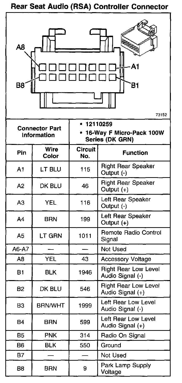 Rear Seat Audio (RSA) Controller Connector: