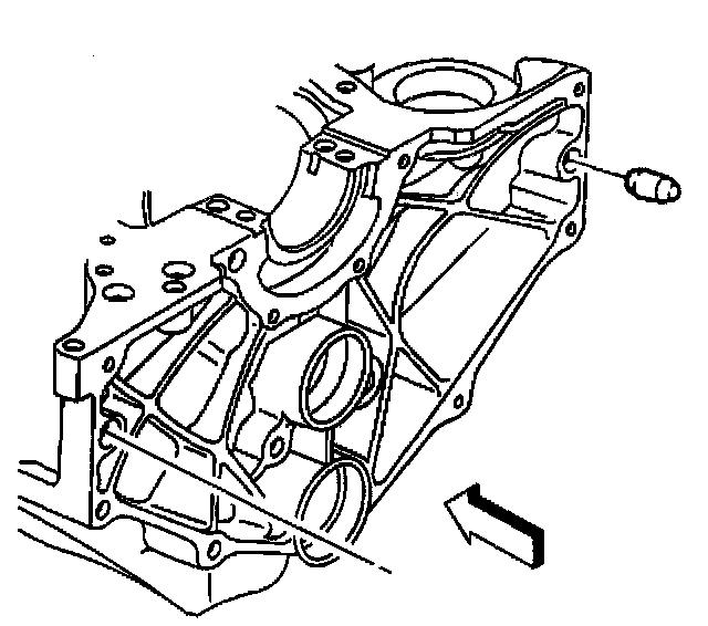 8. Remove the engine block right rear oil gallery plug.