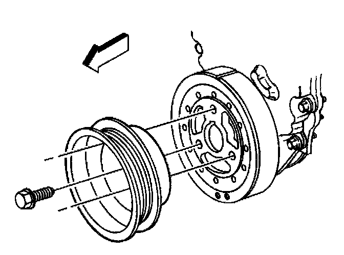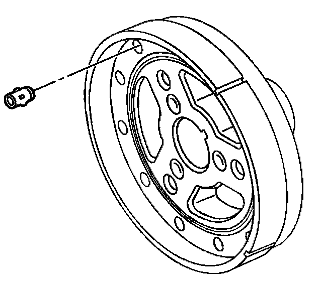 Notice: The inertial weight section of the crankshaft balancer is assembled to the hub with a rubber type material. The correct Installation Procedure (with the proper tool) must be followed or movement of the inertial weight section of the hub will destroy the tuning of the crankshaft balancer.