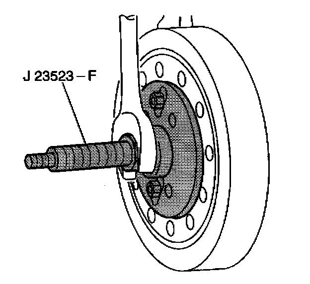 5. Use the J 23523-F in order to press the crankshaft balancer onto the crankshaft.