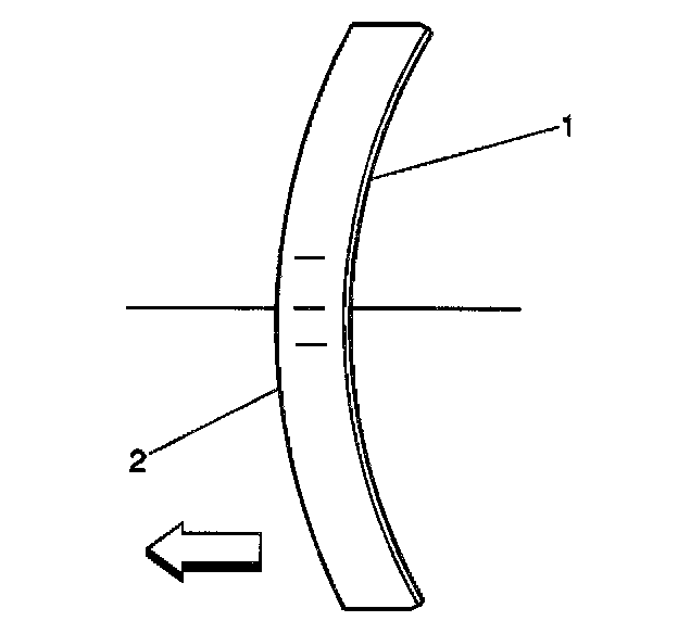 8. Ensure that the crown of the crankshaft balancer washer (2) is faced away from the engine.