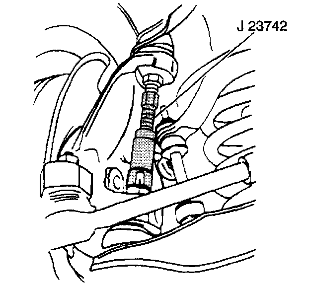 11. Disconnect the steering knuckle from the lower ball joint using J 23742.