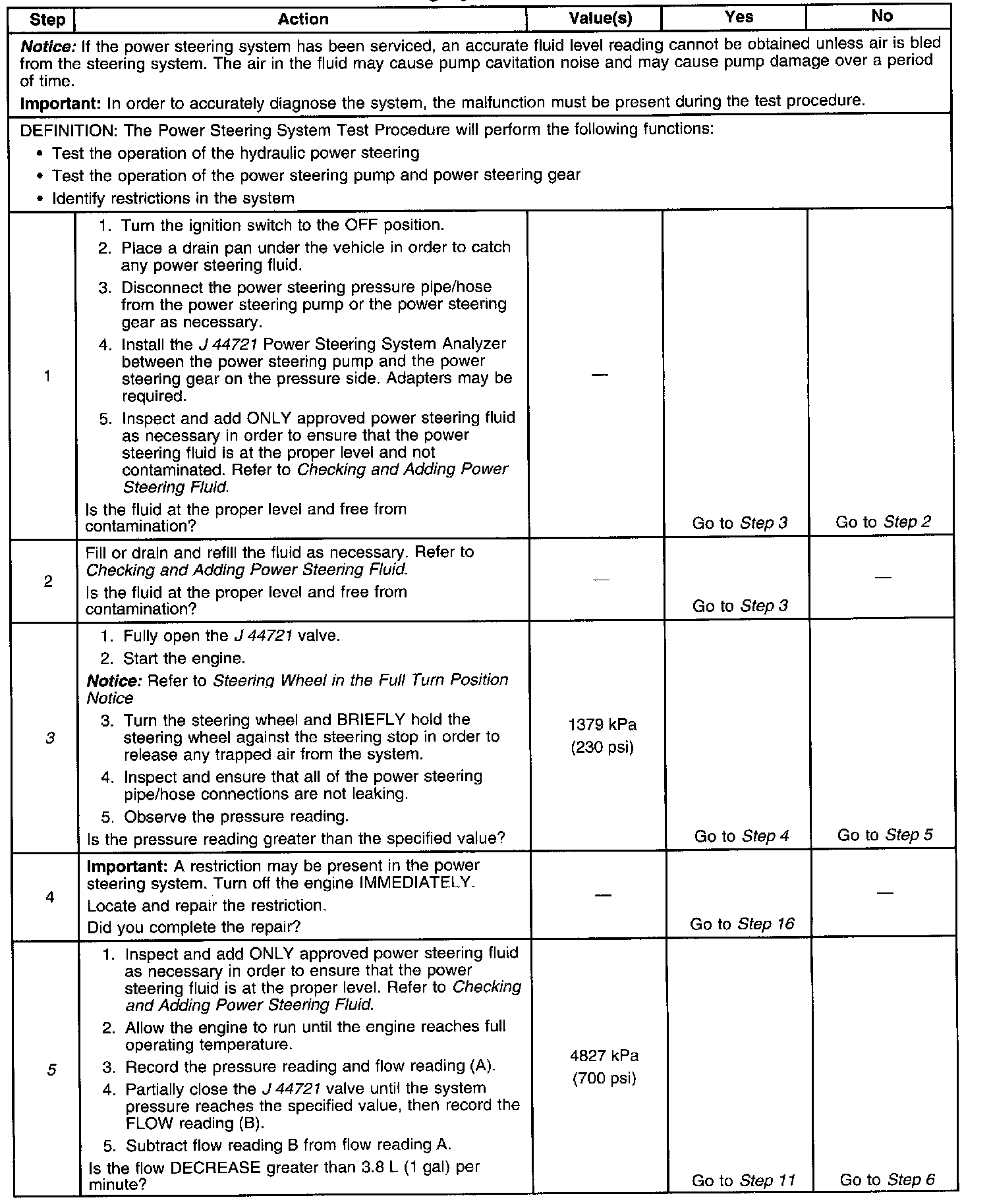 Power Steering System Test Procedure