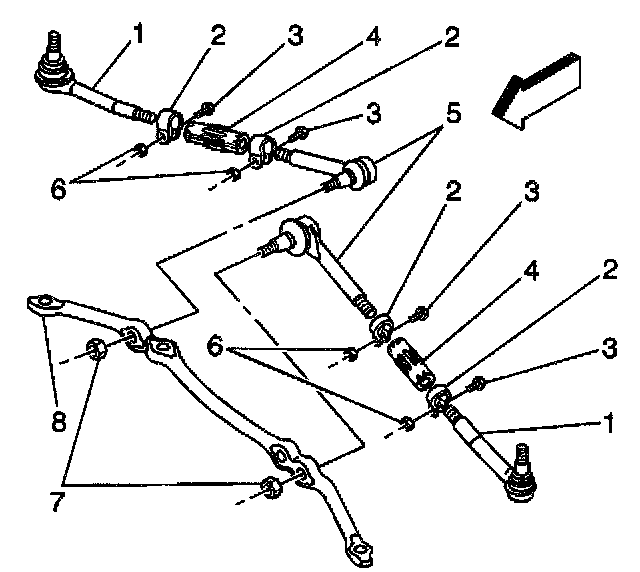 8. Remove the inner tie rod ends (5) from the adjuster tube (4).