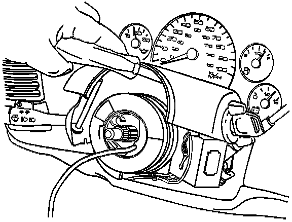 19. Remove the horn plunger from the steering column by pressing inward to the stop and rotate the horn plunger 90 degrees.