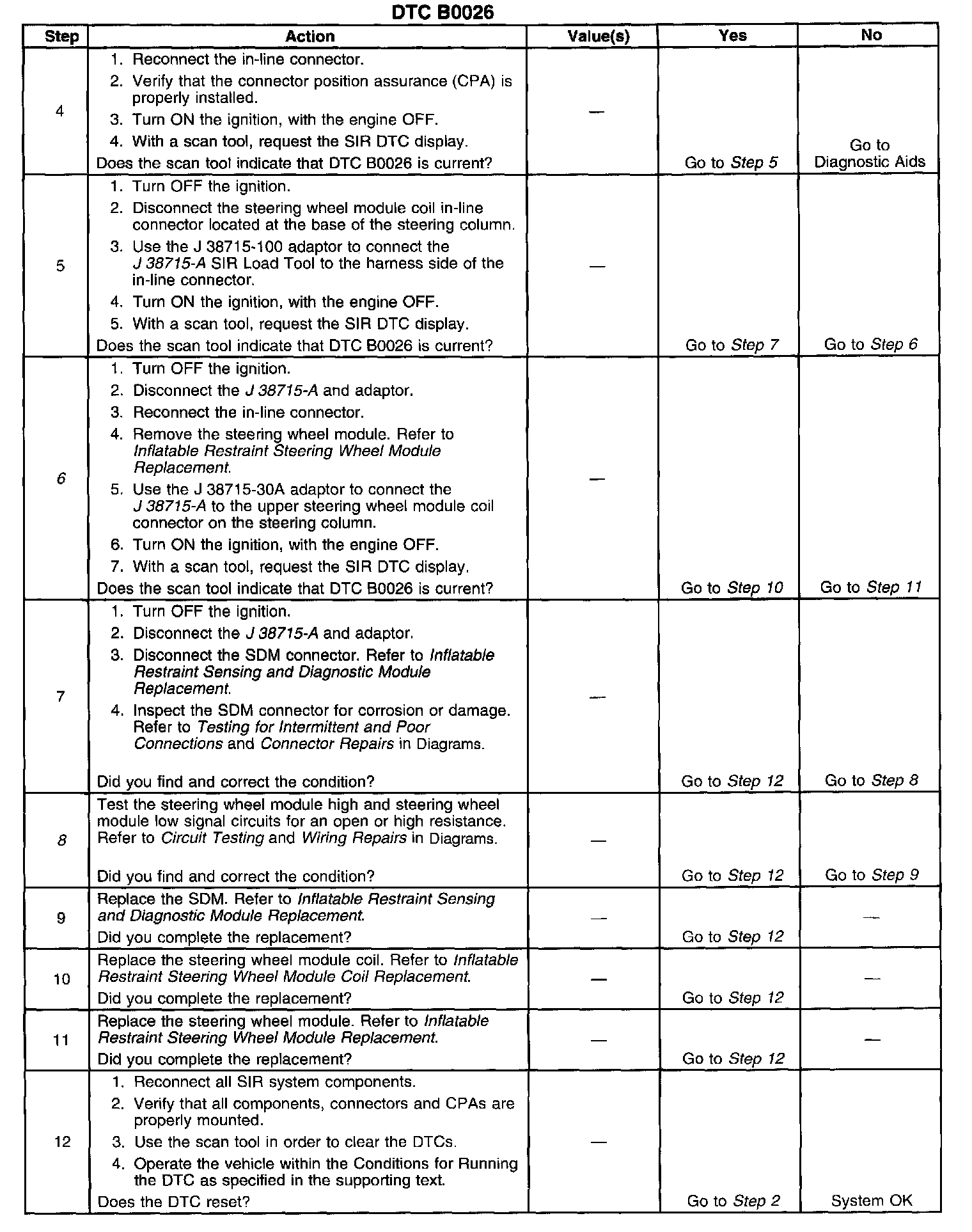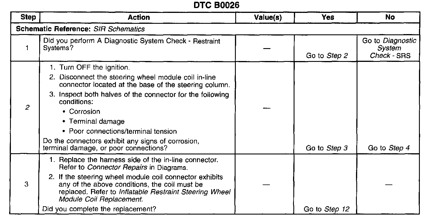 ^ The SDM detects the steering wheel module deployment loop resistance is greater than 4.8 Ohms for 500 milliseconds.