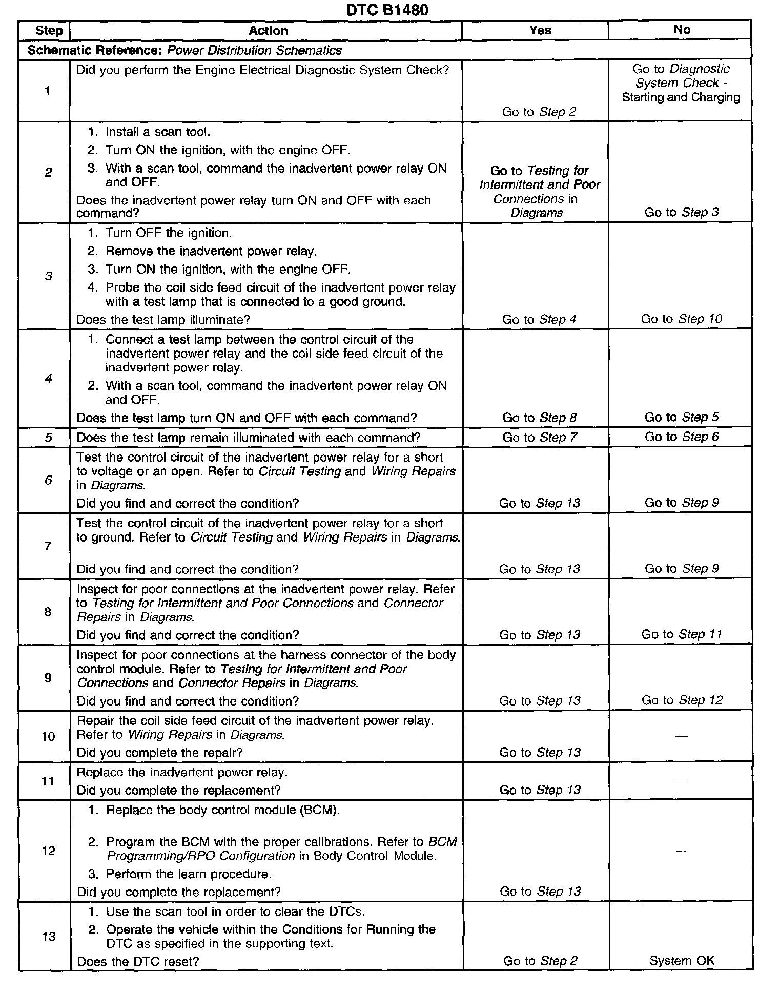 The number(s) below refer to the step number(s) on the diagnostic table.