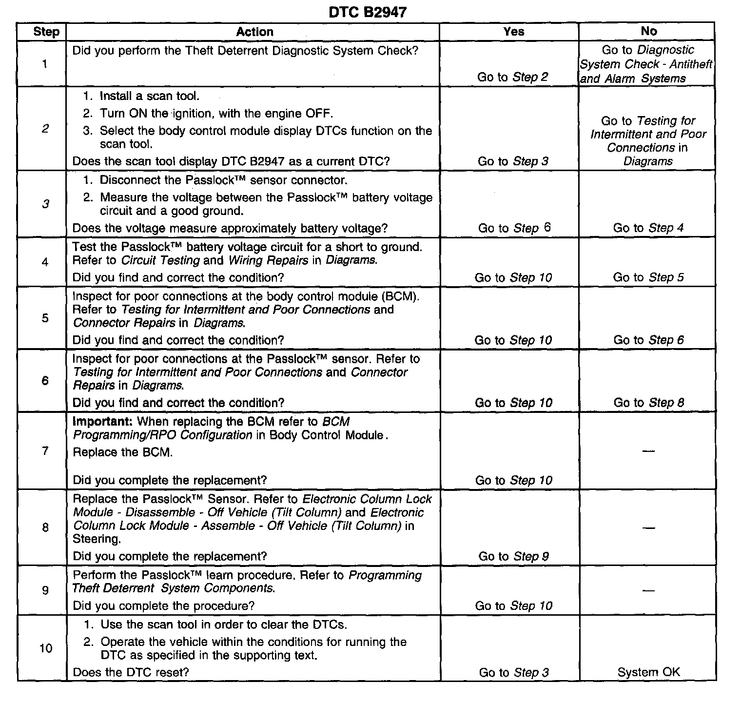 - When a short to ground is no longer present on the Passlock sensor power circuit, the ignition switch must be cycled from OFF to ON before this DTC can change from a current DTC to a history DTC.