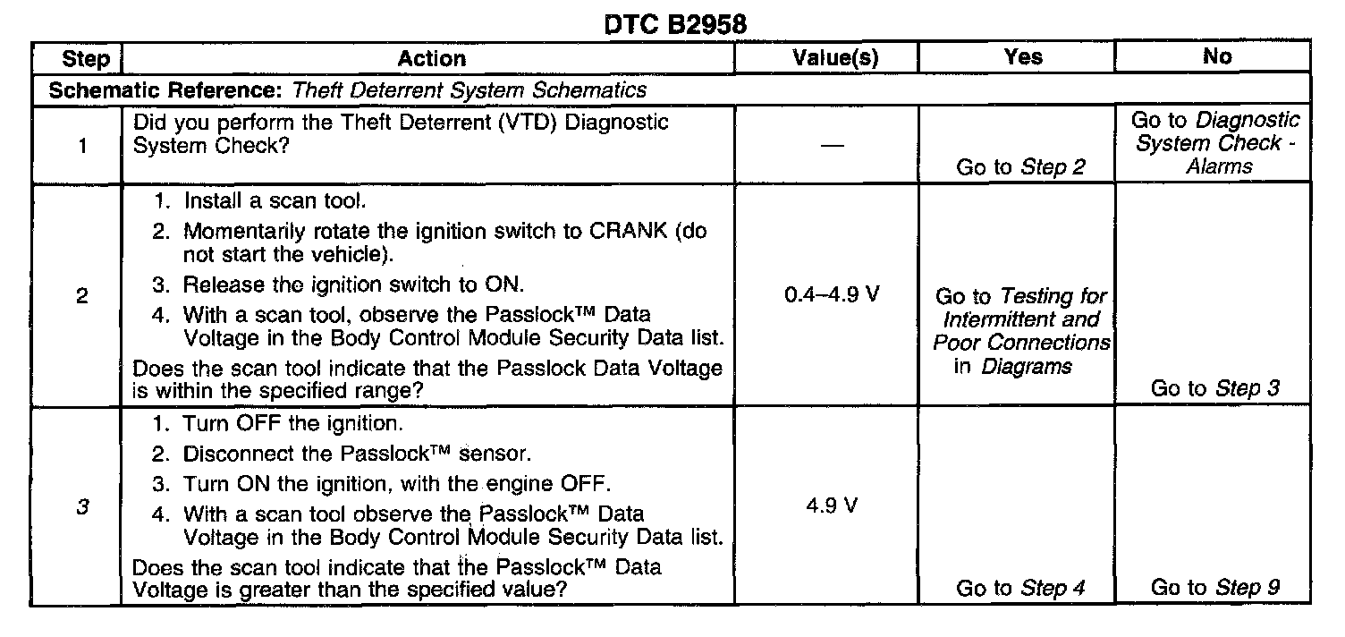 - You may be directed to this table from the VTD Diagnostic System Check without a DTC B2958 being set. If you were directed to this table, follow all of the steps in this diagnostic table.