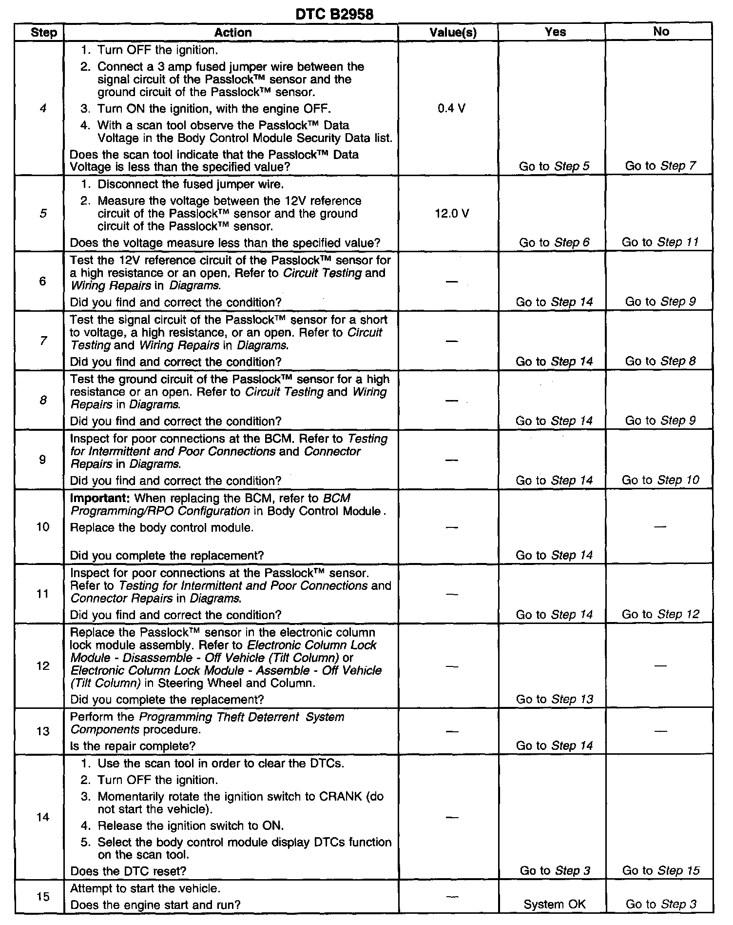 - Inspect the Passlock(TM) sensor harness for an intermittent or a short to battery. Refer to Testing for Intermittent and Poor Connections in Diagrams.