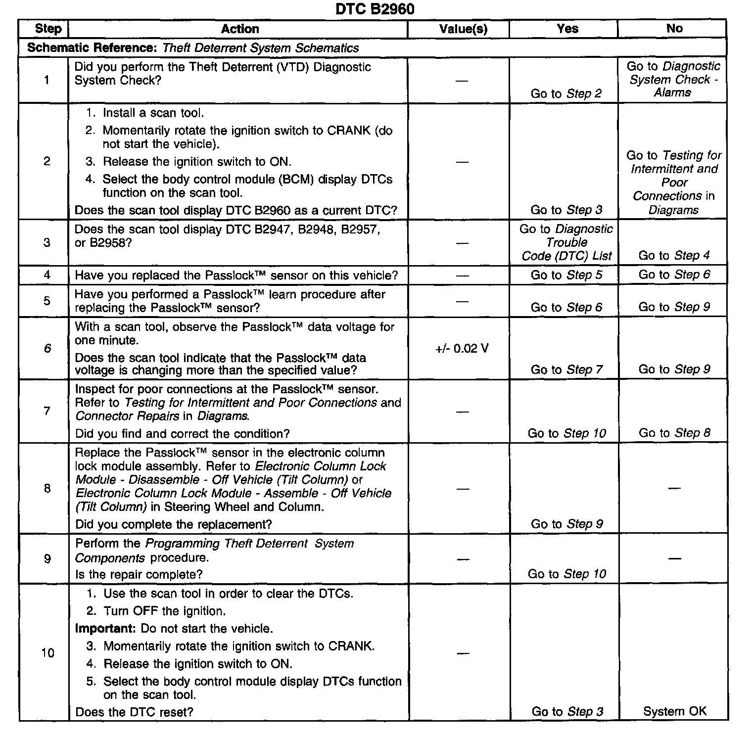 - Inspect for poor connections at the Passlock(TM) sensor. Refer to Testing for Intermittent and Poor Connections in Diagrams.