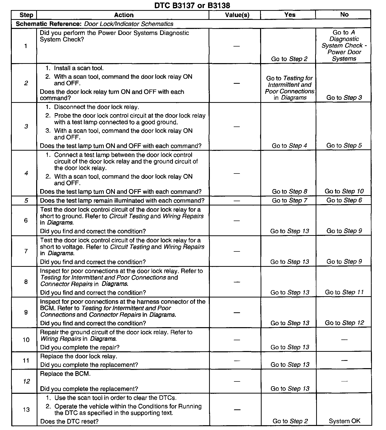 4. Tests for an open in the ground circuit to the door lock relay.