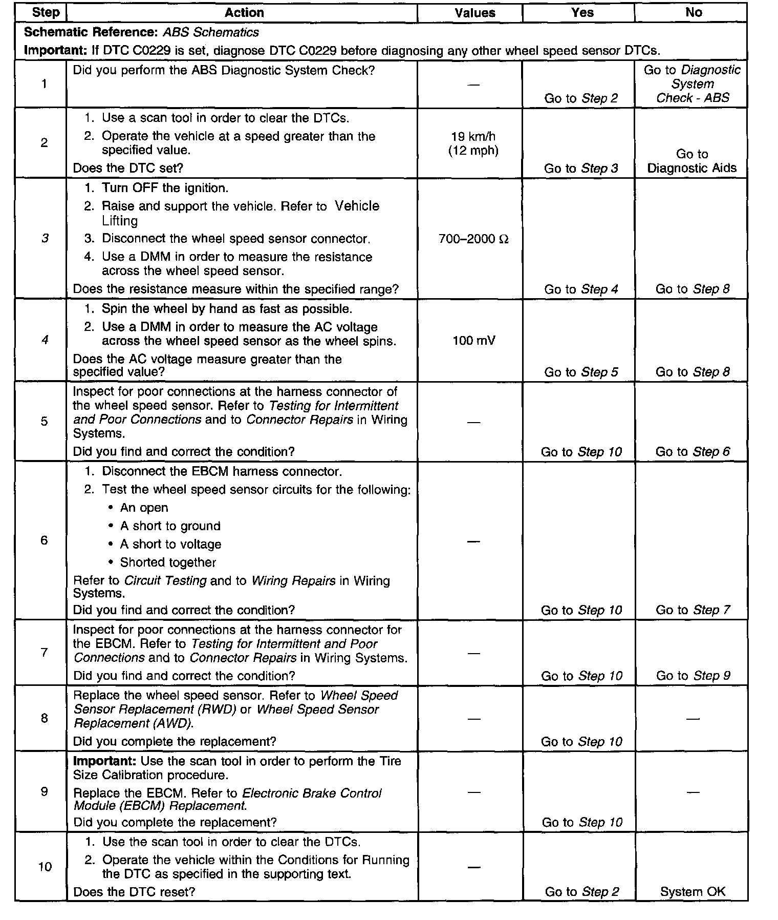 4. Ensures that the wheel speed sensor is generating a valid AC voltage output.