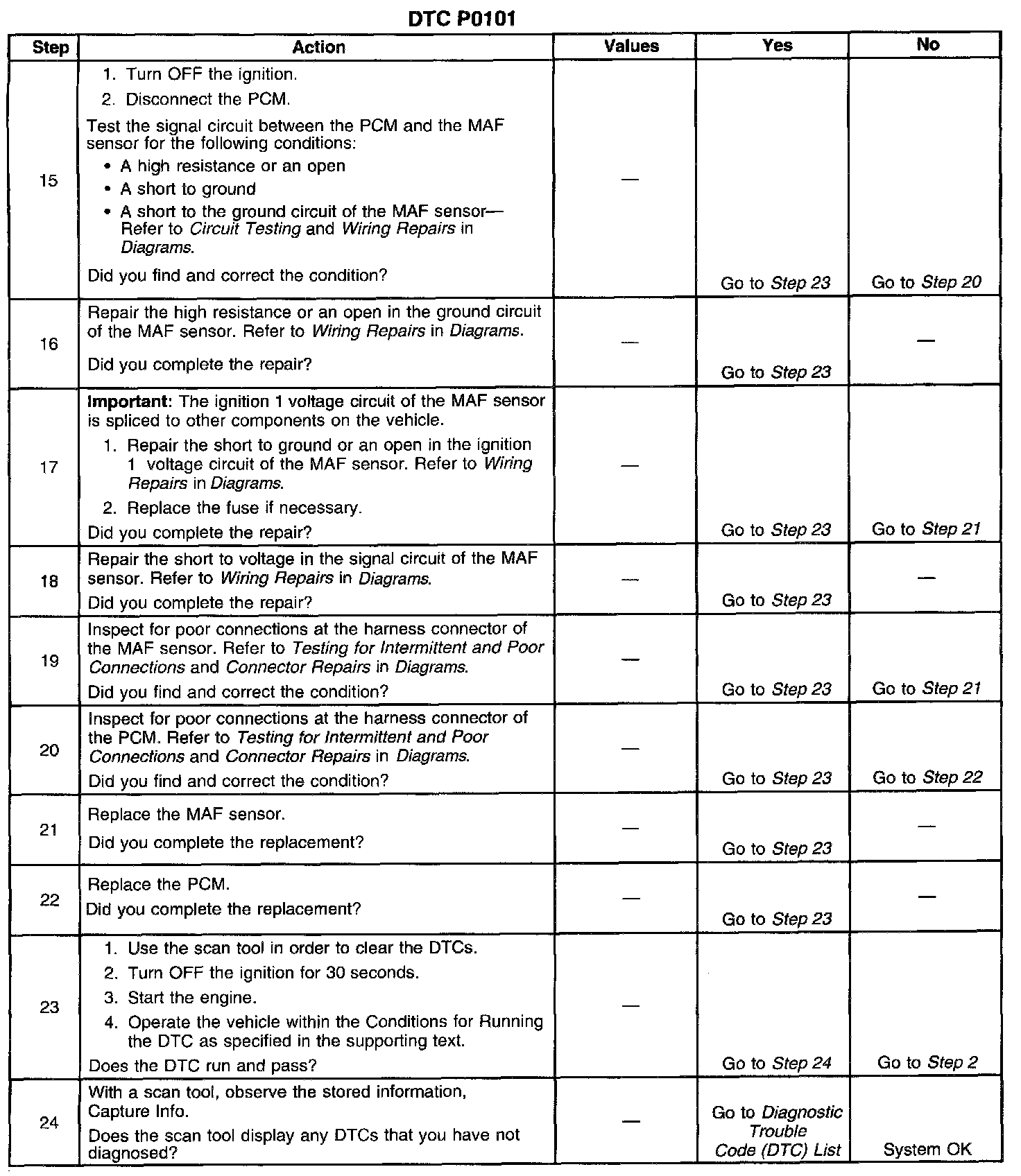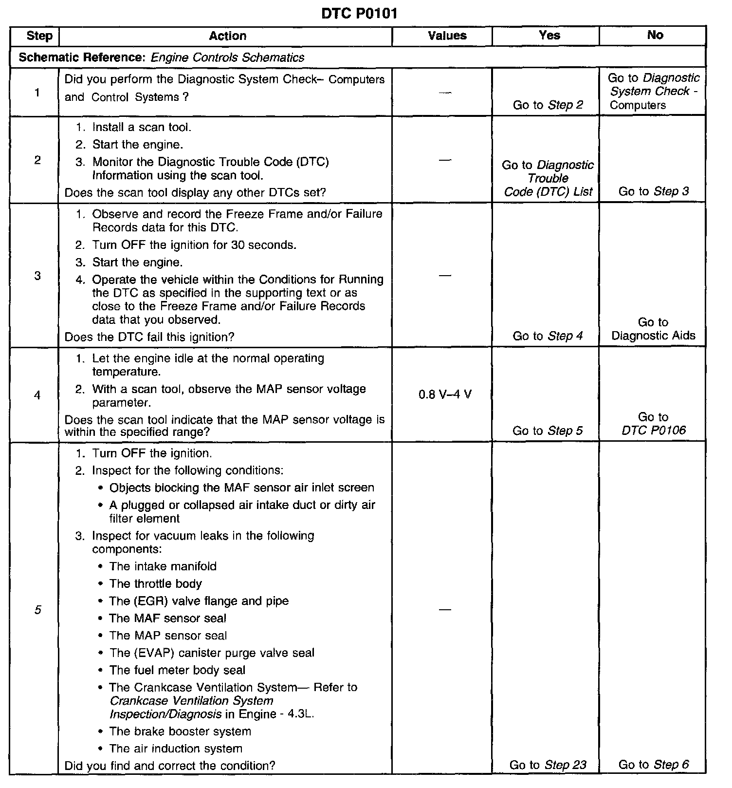 5. Any unmetered air entering the engine may cause this DTC to set. This step eliminates any conditions which can cause a DTC to set with a normally operating MAF sensor.