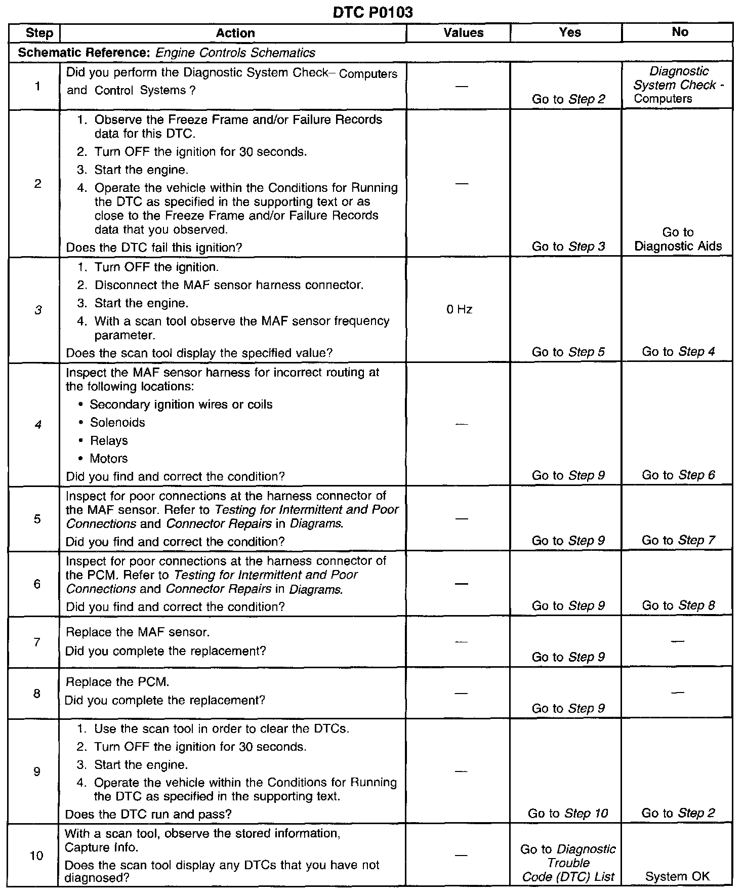 4. This step eliminates the conditions which can cause a DTC to set with a normally operating MAF sensor.
