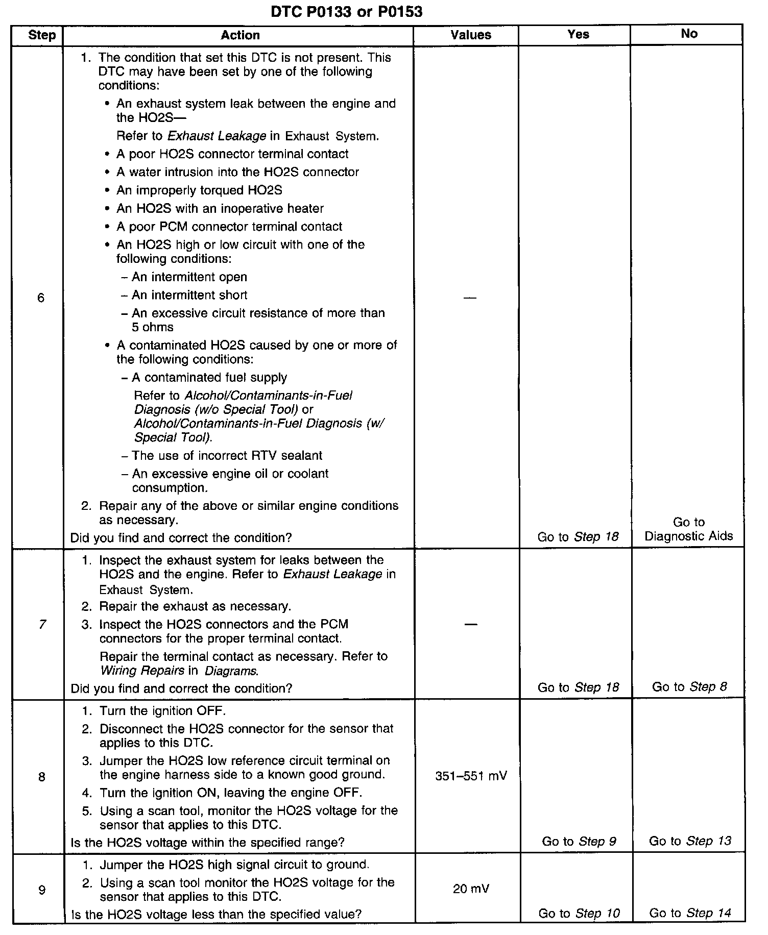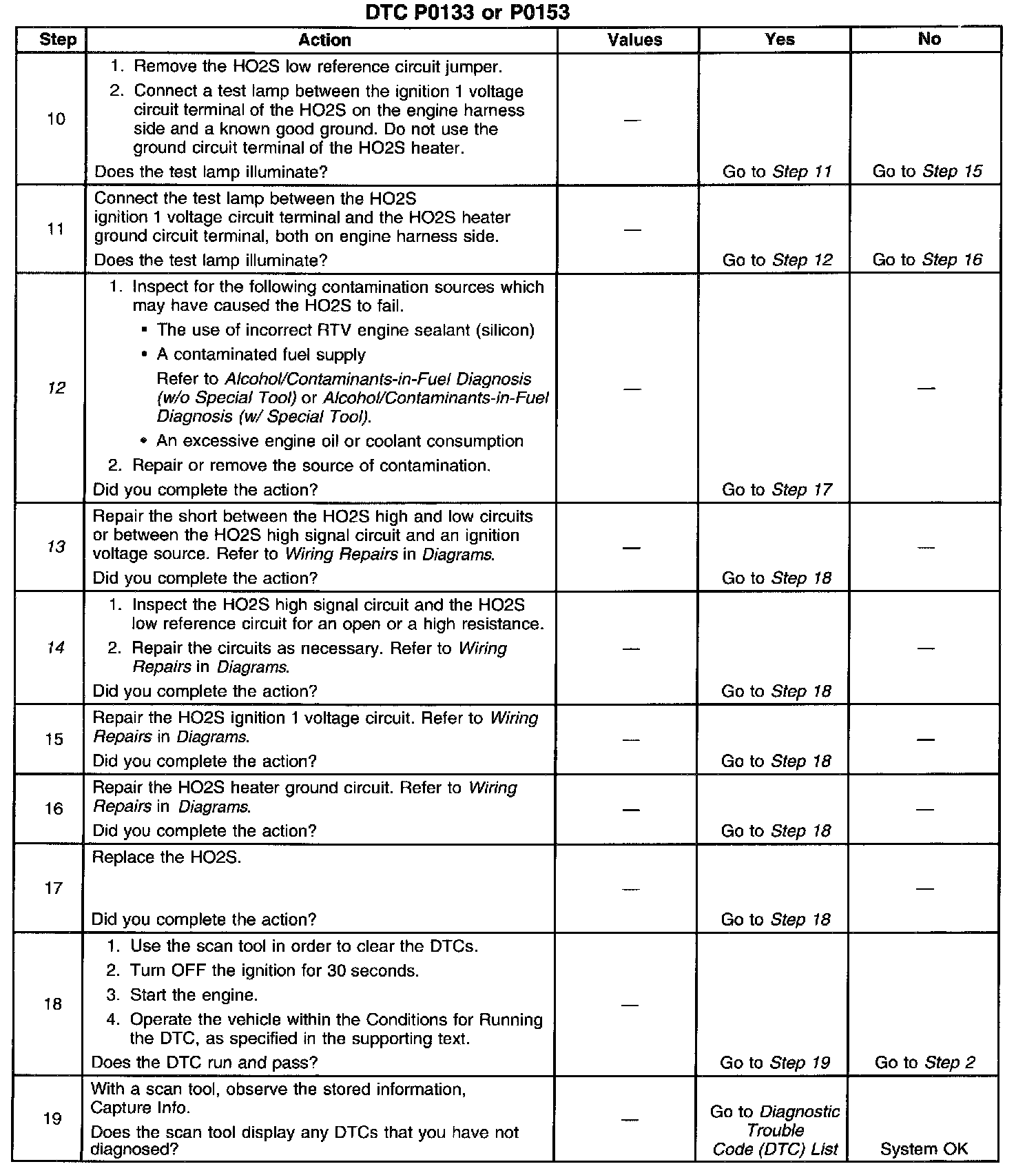13. If the voltage observed in Step 8 is less than the range specified a short between the high and the low circuits or a short between the high circuit and ground is indicated. With the HO2S and the PCM disconnected the resistance between the high and the low circuits and the resistance between the high circuit and ground should measure infinite.