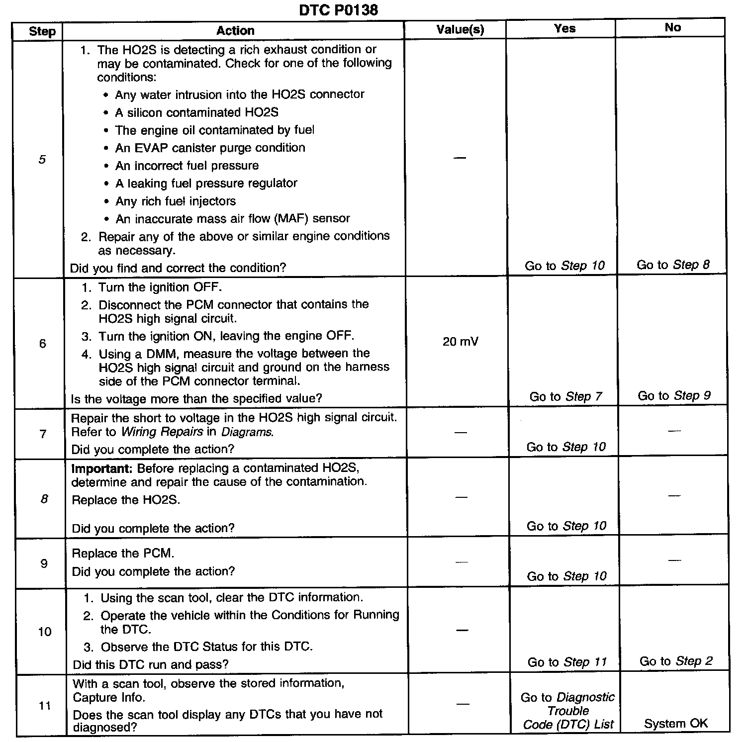 ^ The fuel pressure-If the pressure is too high the system will run rich. The Powertrain Control Module (PCM) can compensate for some increase. However, if the pressure gets too high, the DTC may set. Refer to Fuel System Diagnosis. Component Tests and General Diagnostics