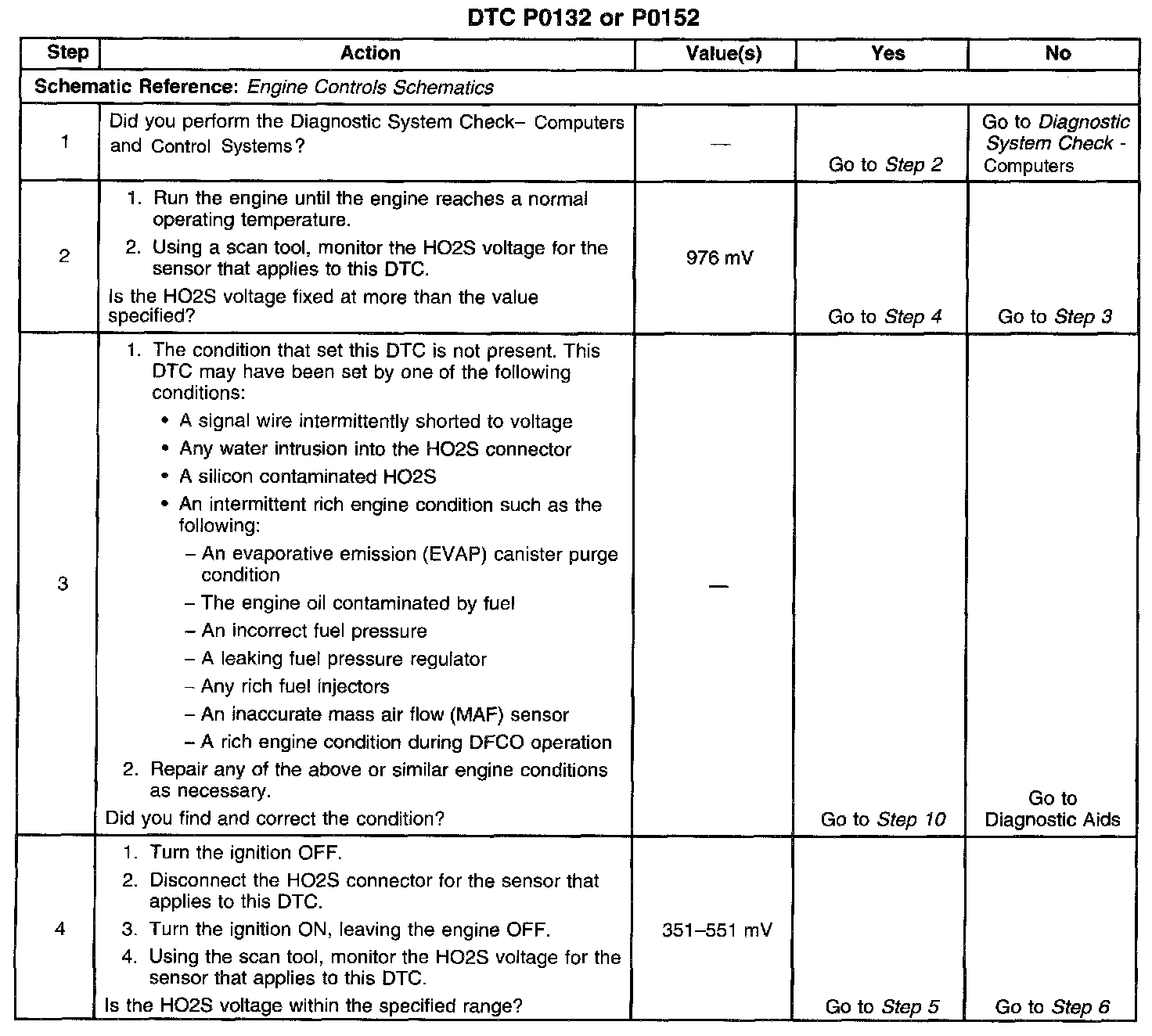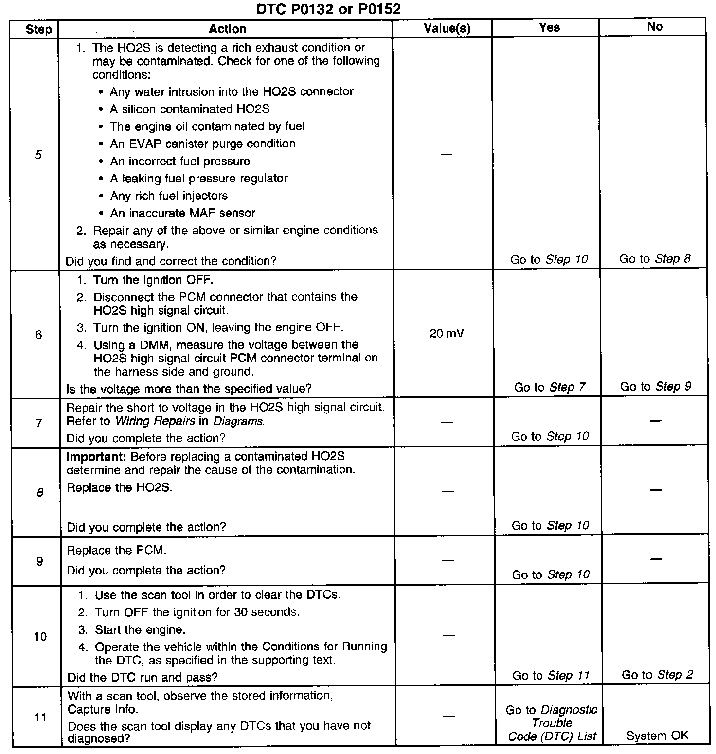 ^ Inspect for a false rich indication due to silicon contamination of the heated oxygen sensor. This DTC, accompanied by a lean driveability condition and a powdery white deposit on the sensor, may indicate a false rich condition. Inspect for intermittents.