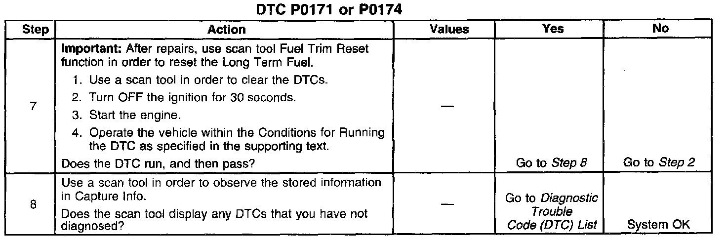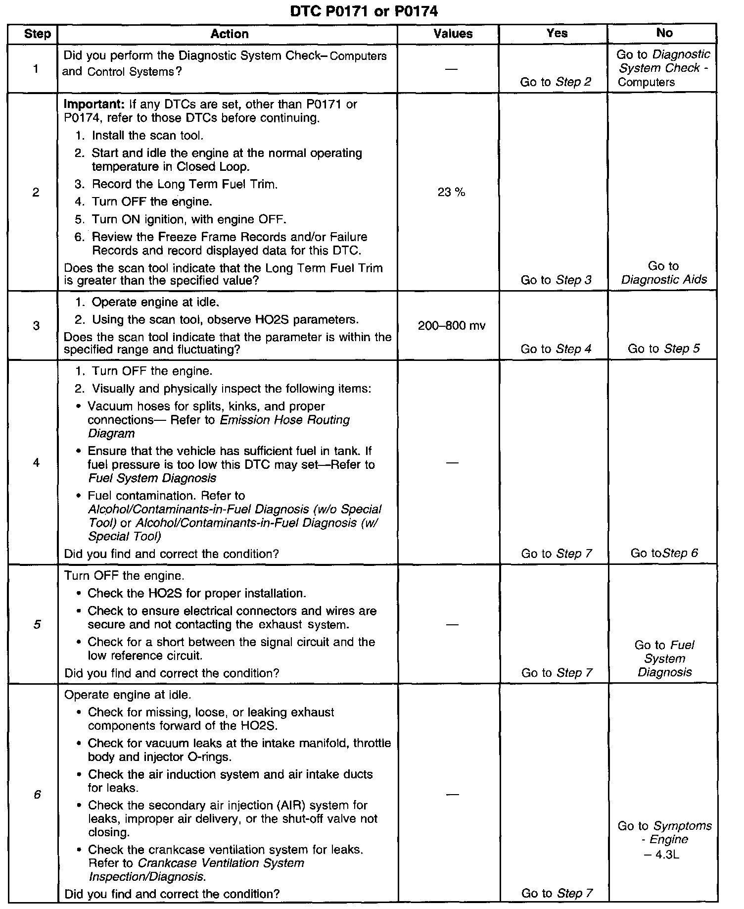 CIRCUIT DESCRIPTIONThe Powertrain Control Module (PCM) controls the air/fuel metering system in order to provide the best possible combination of driveability, fuel economy and emission control. Fuel delivery is controlled differently during open and closed loop. During Open Loop the PCM determines fuel delivery based on sensor signals, without oxygen sensor input. During Closed Loop, the oxygen sensor inputs are added and used by the PCM to calculate short and long term fuel trim (fuel delivery adjustments). If the oxygen sensors indicate a lean condition, fuel trim values will be above 0 percent. If the oxygen sensors indicate a rich condition, fuel trim values will be below 0 percent. Short Term fuel trim values change rapidly in response to the Heated Oxygen Sensor (HO2S) voltage signals. Long Term fuel trim makes coarse adjustments in order to maintain Air/Fuel Ratio of 14.7:1. If the PCM detects an excessively lean condition, this DTC will set.