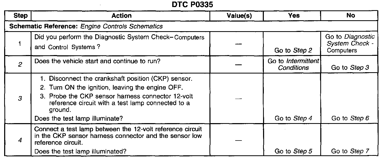 5. This step checks the crankshaft position sensor.
