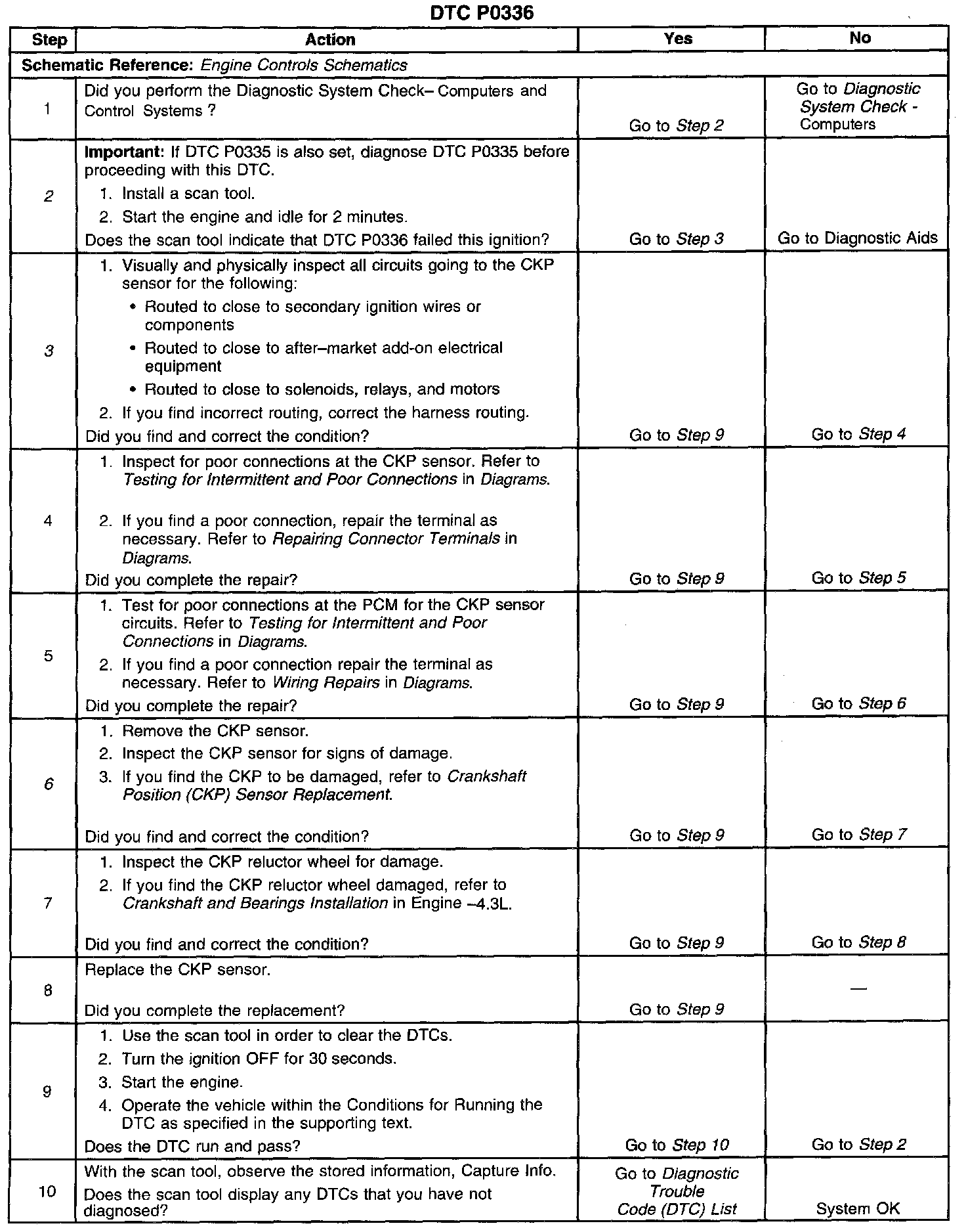^ Excess crankshaft end play will cause the CKP sensor reluctor wheel to move out of alignment with the CKP sensor. This could result in any one of the following conditions: