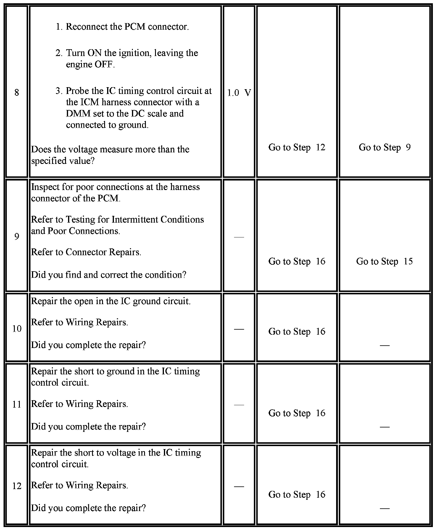 3. This step checks if the ignition control (IC) timing signal from the PCM is available at the ignition control module.