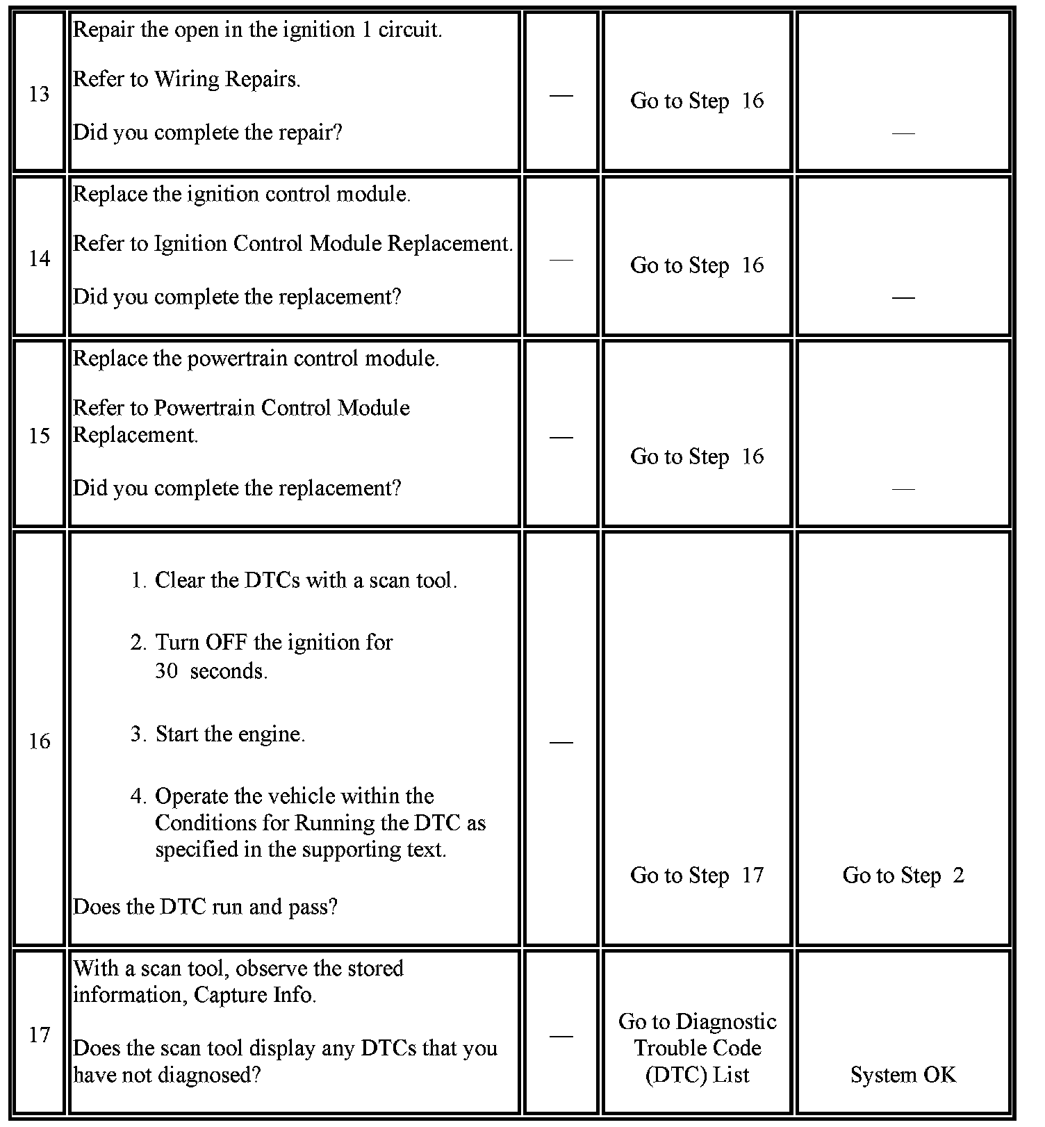 The numbers below refer to the step numbers on the diagnostic table.