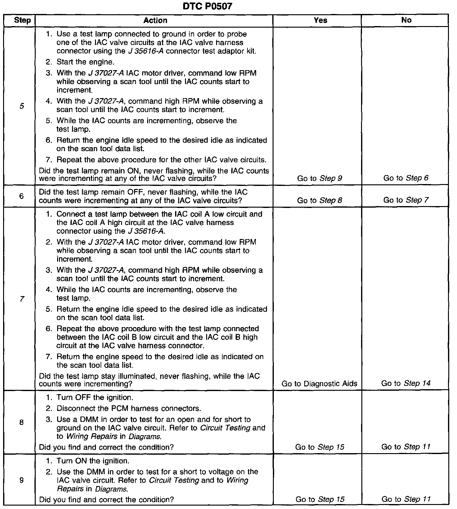 5. This test will determine the ability of the engine controller and IAC valve circuits to control the IAC valve.