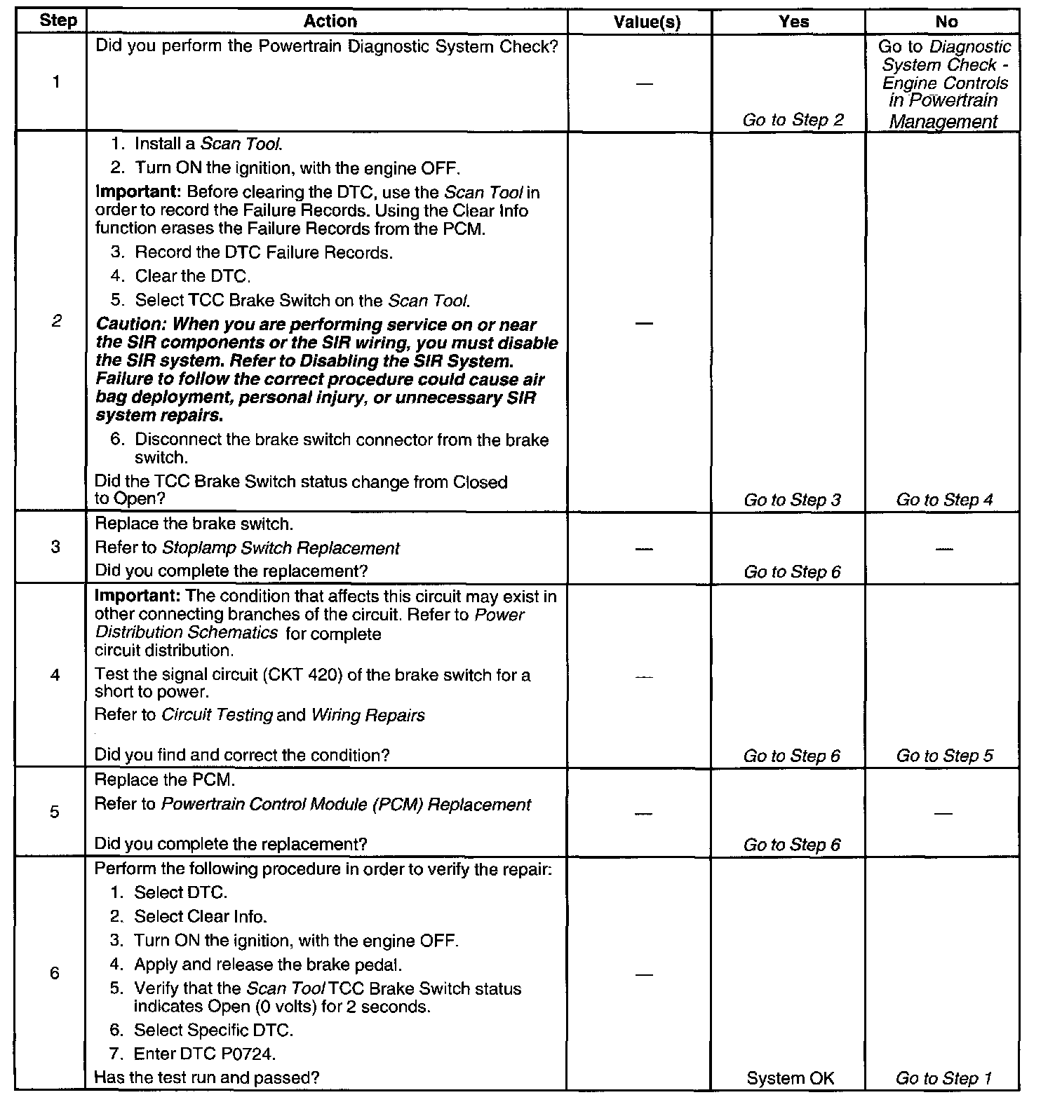 Inspect for ABS DTCs. A faulty ABS condition may contribute to setting DTC P0724.