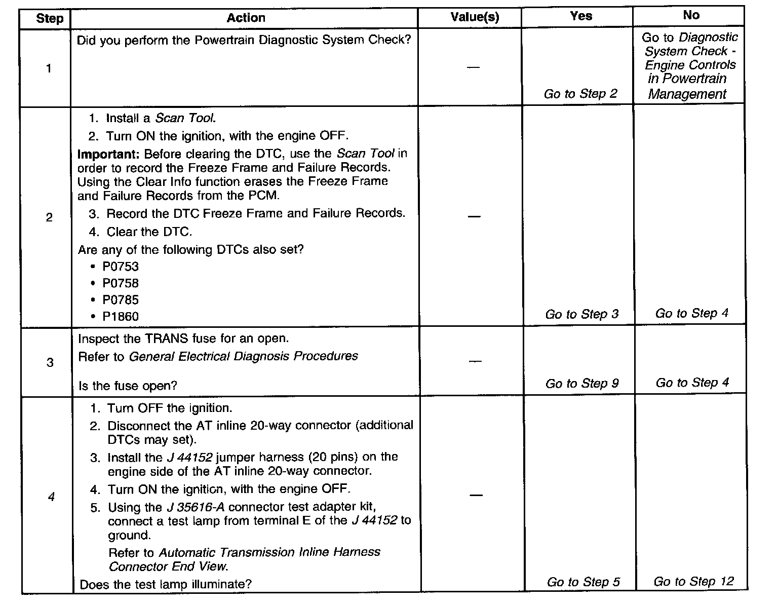 ^ The PCM stores DTC P0740 in PCM history during the second consecutive trip in which the Conditions for Setting the DTC are met.