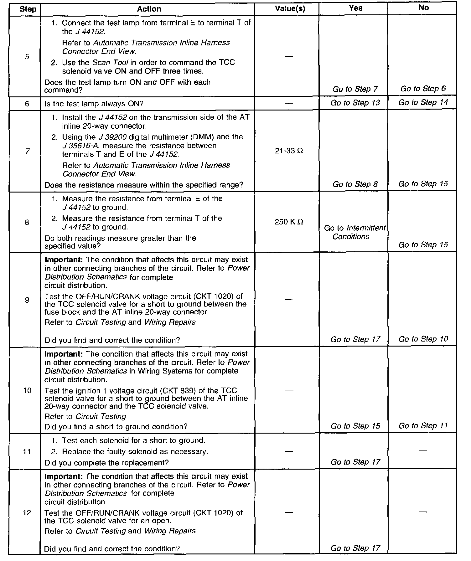 7. This step tests the resistance of the TCC solenoid valve and the Automatic Transmission (AT) wiring harness assembly.