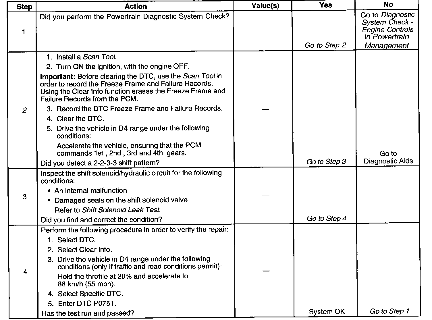When the PCM detects a 2-2-3-3 shift pattern, then DTC P0751 sets. DTC P0751 is a type B DTC.