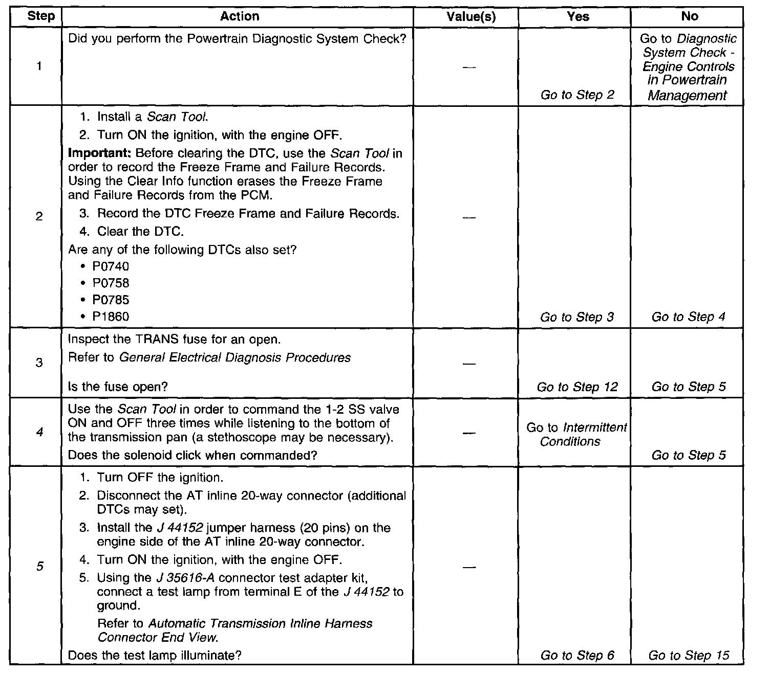 5. This step tests for power to the 1-2 SS valve from the ignition through the fuse.