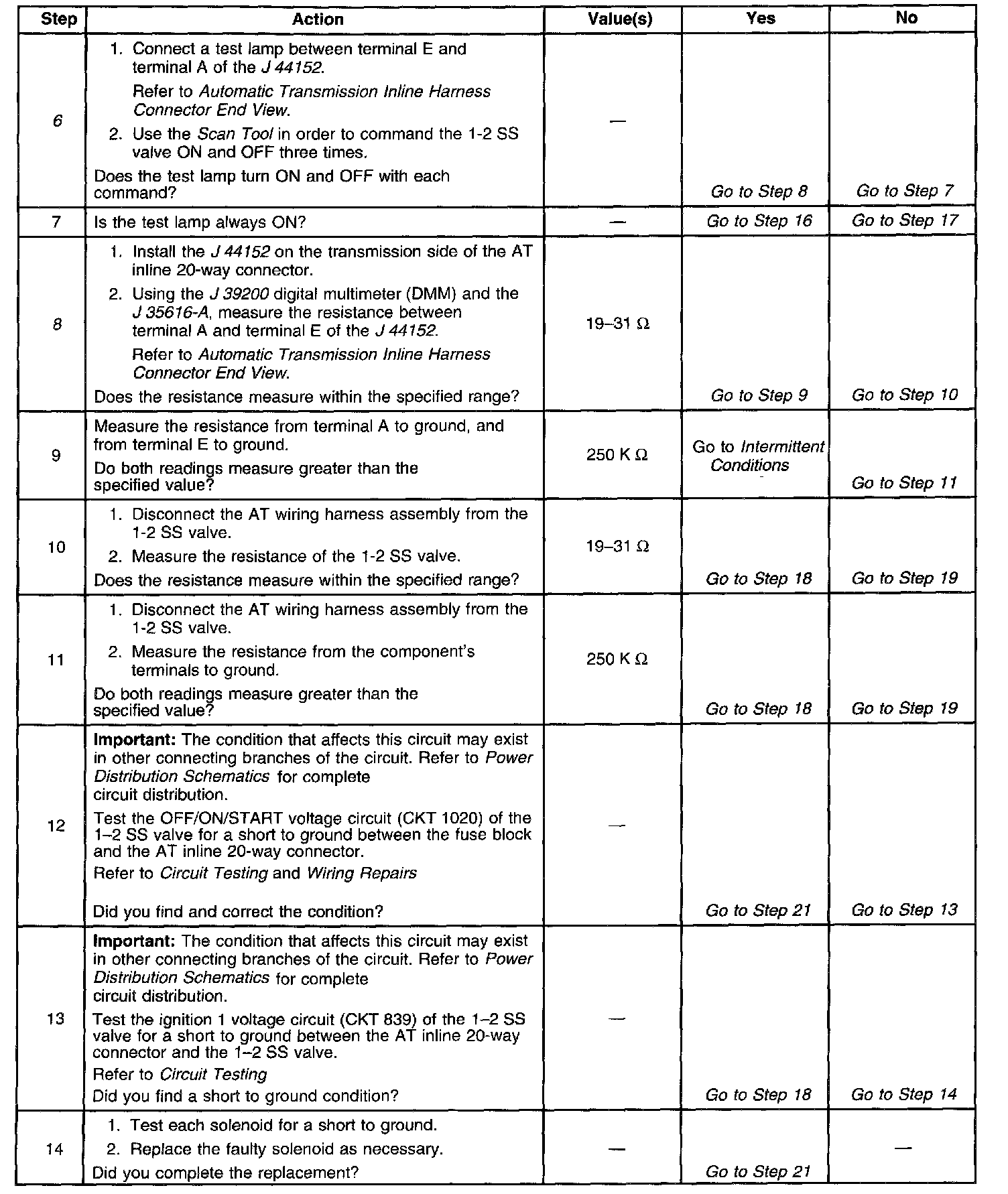 8. This step measures the resistance of the AT wiring harness assembly and of the 1-2 SS valve.