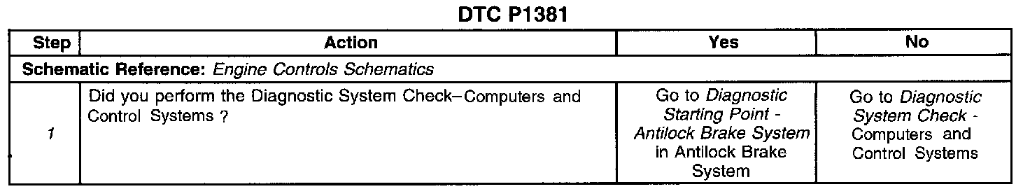 1. Service the ABS before diagnosing for a misfire, because an actual engine misfire may or may not exist. The following 2 examples illustrate how this DTC can be set with or without an actual engine misfire: