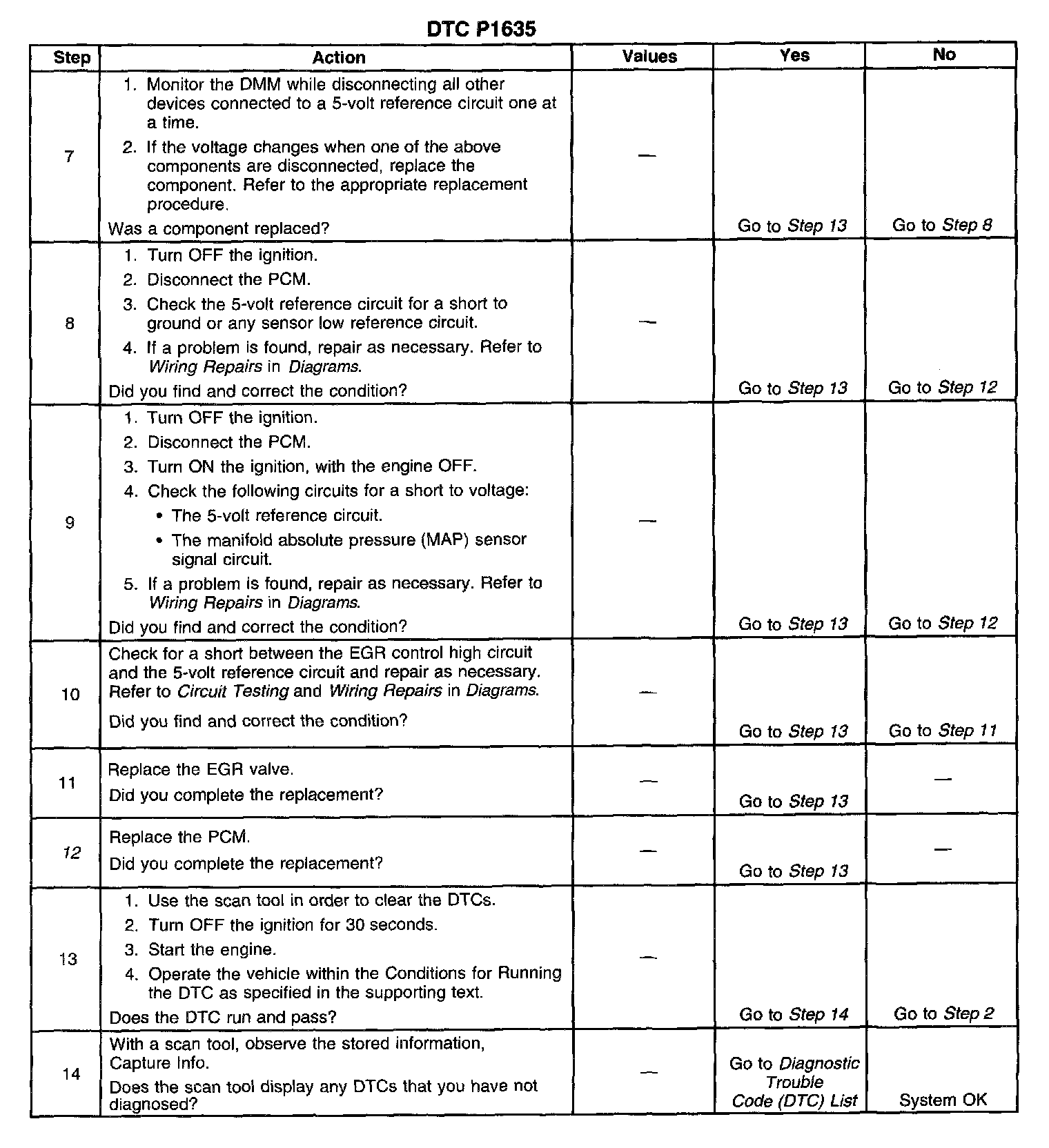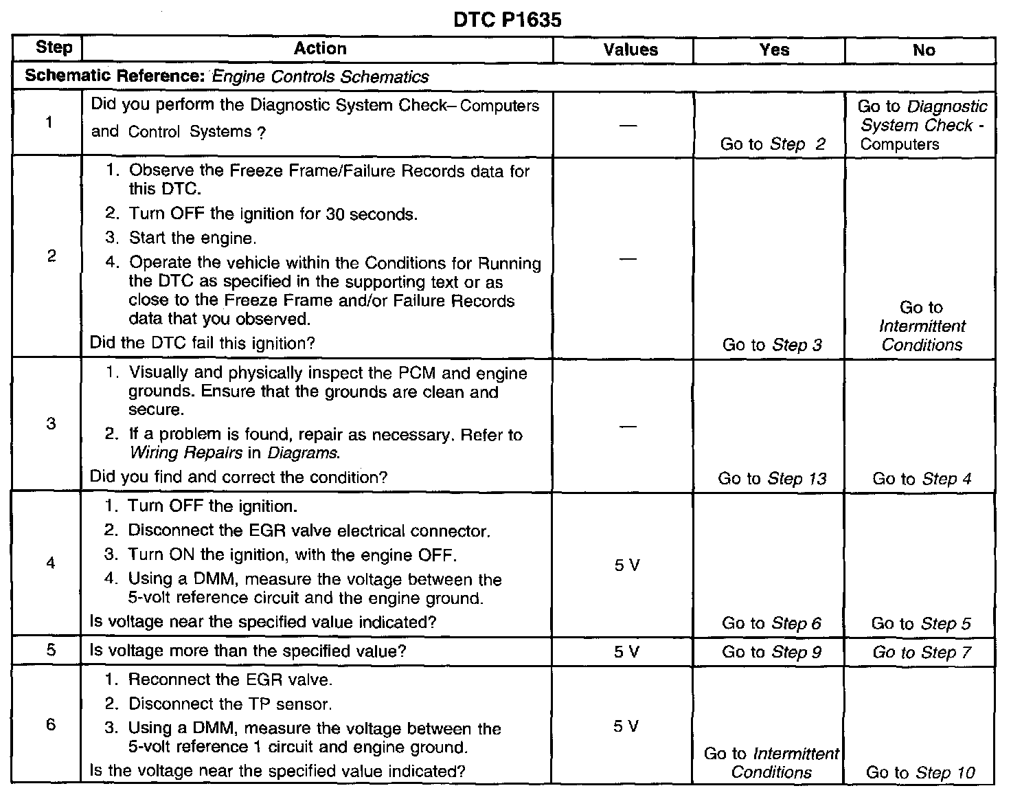 The Powertrain Control Module (PCM) monitors the voltage on the 5-volt reference 1 circuit. If the voltage is out of tolerance, the PCM will set DTC P1635.