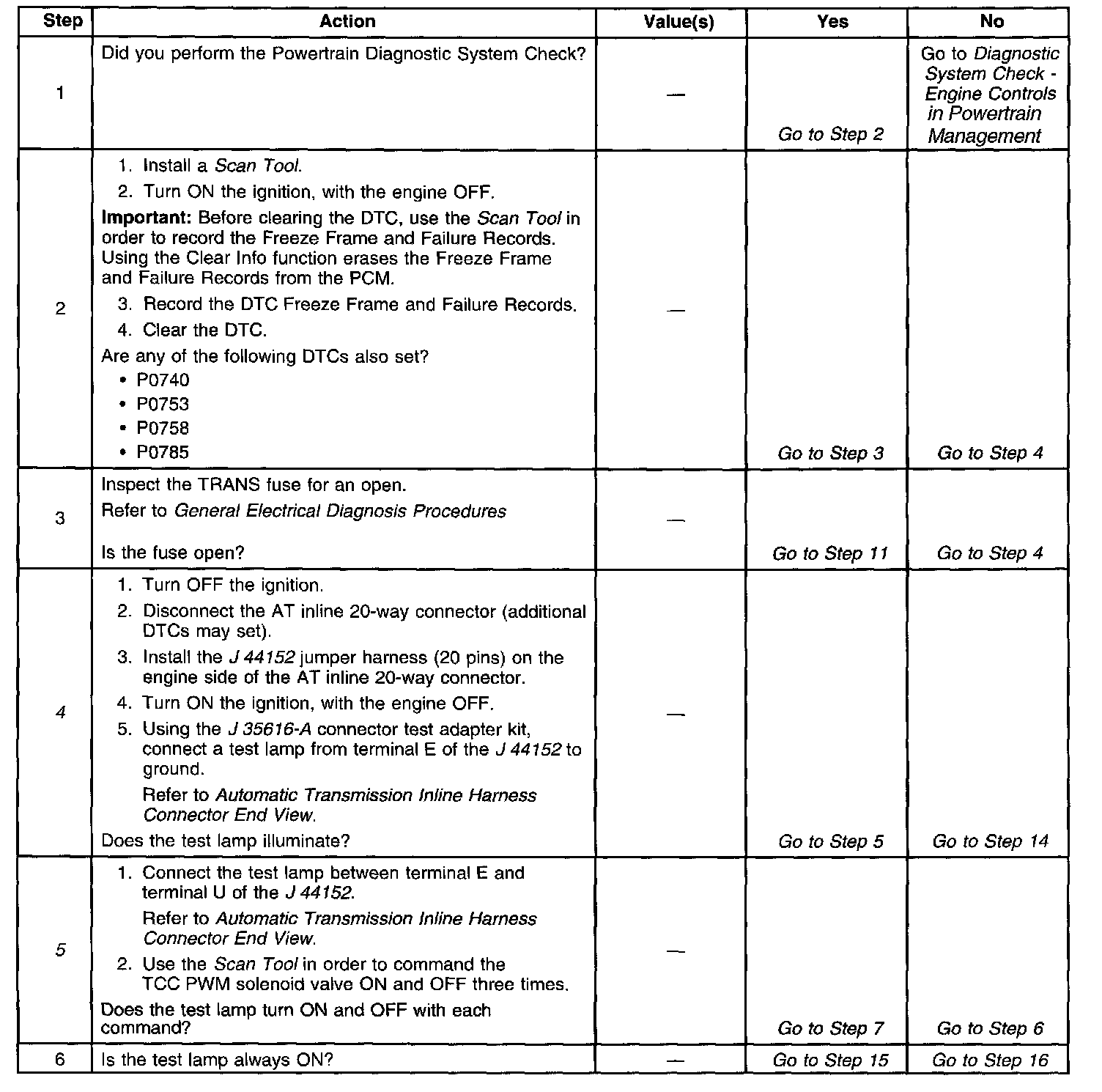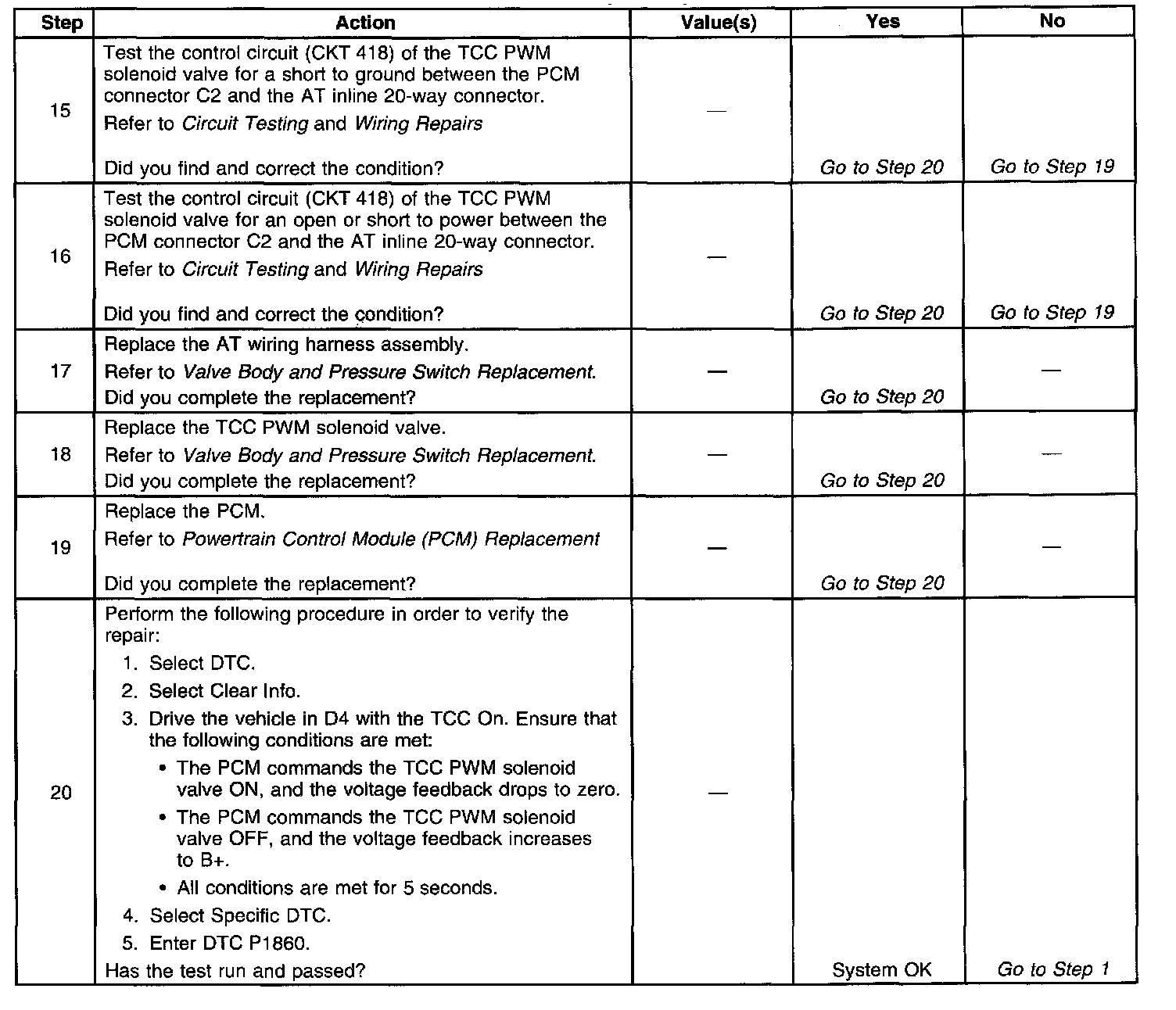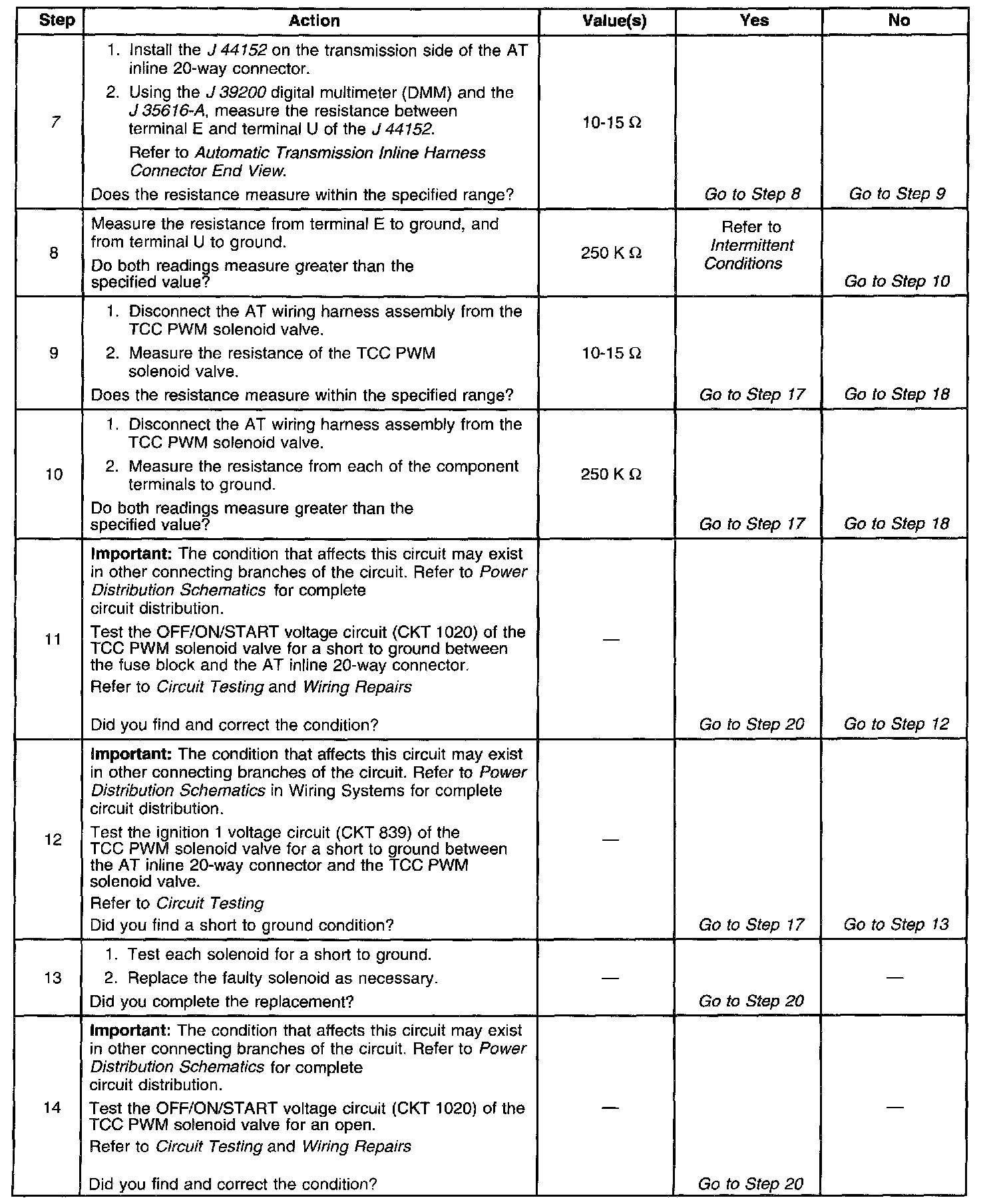 7. This step tests the resistance of the TCC PWM solenoid valve and the automatic transmission wiring harness assembly.