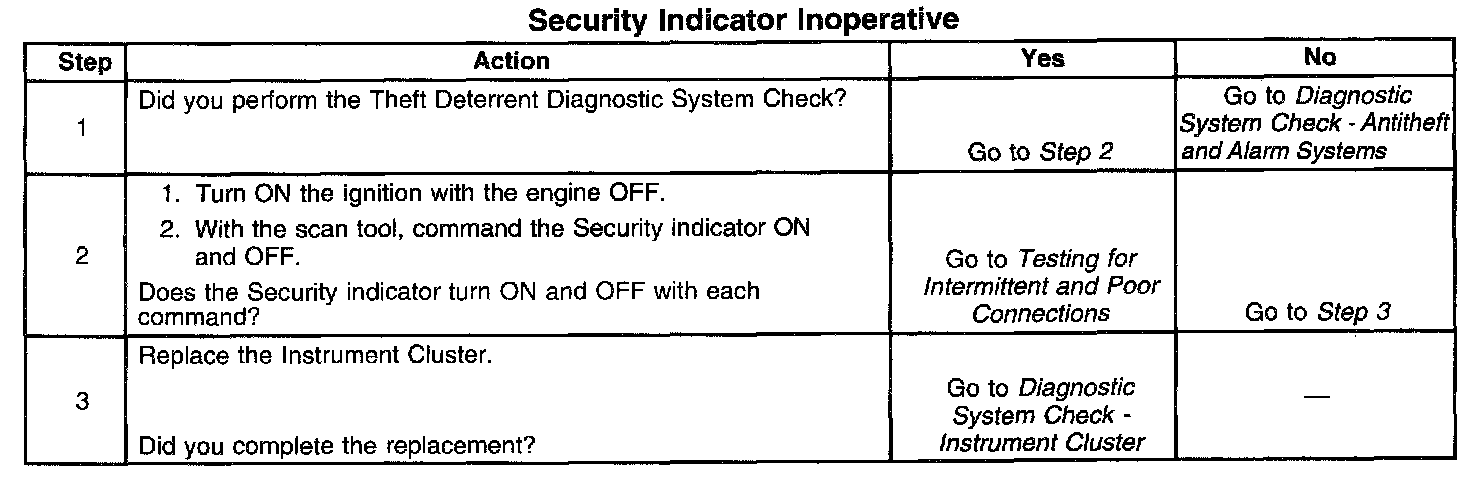 SECURITY Indicator Inoperative
