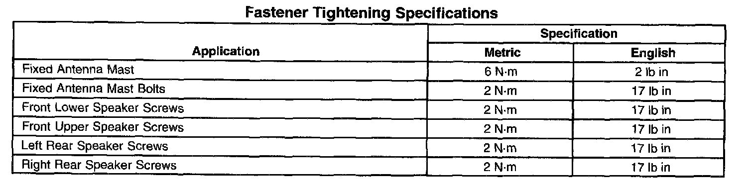 Fastener Tightening Specifications: