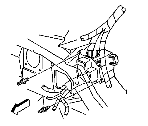 8. Remove the 2studs that retain the junction block (1) to the bulkhead.