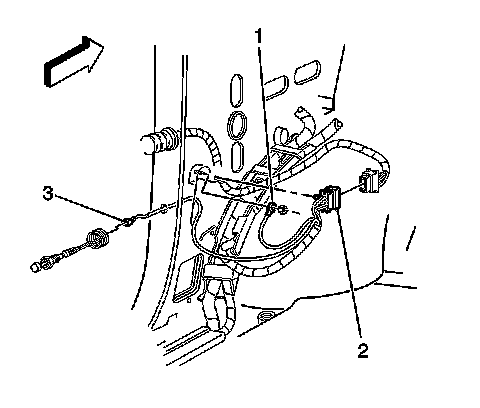 35. Disconnect the door jamb switch connector on the left (3).
